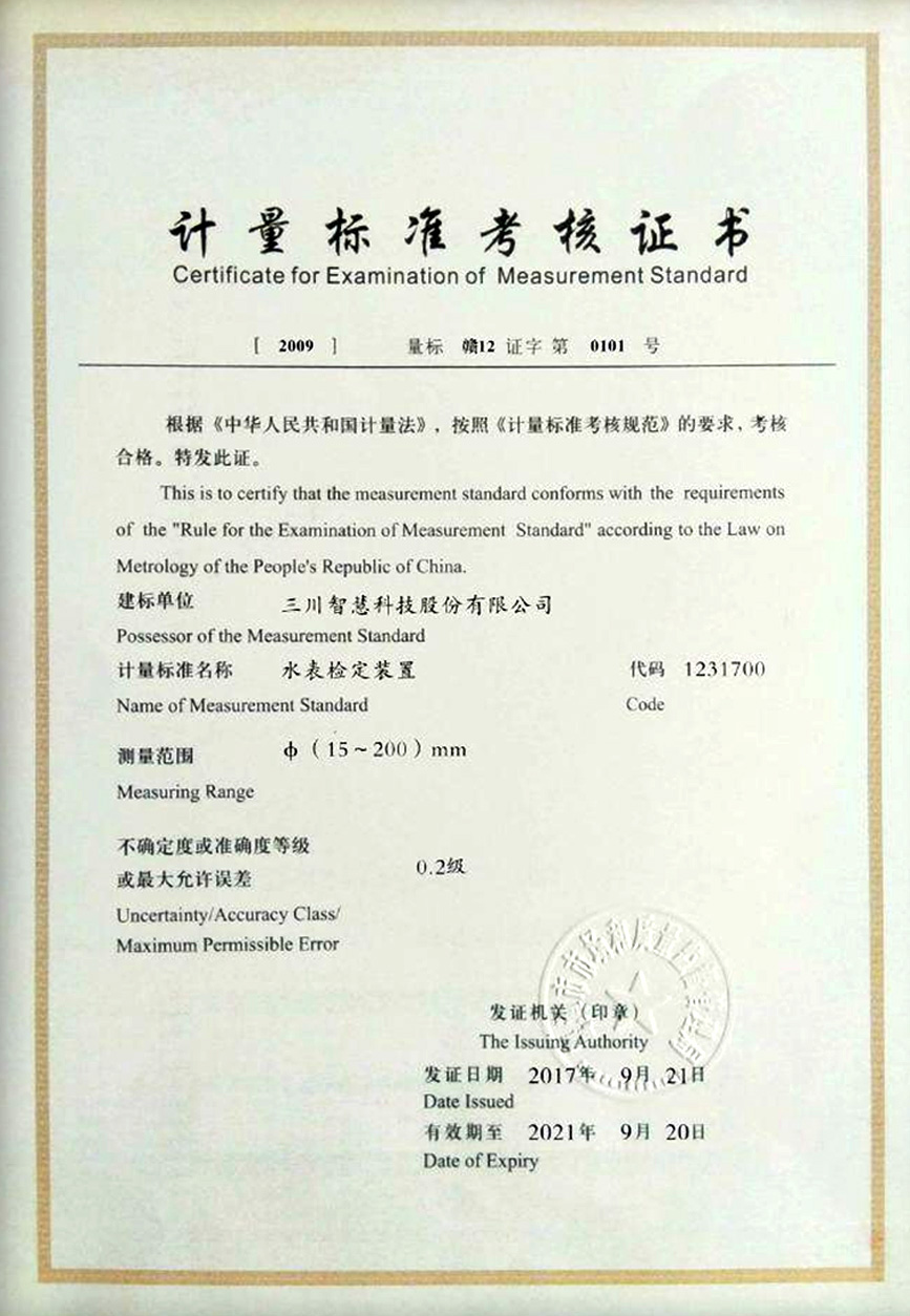計量標準考核證書