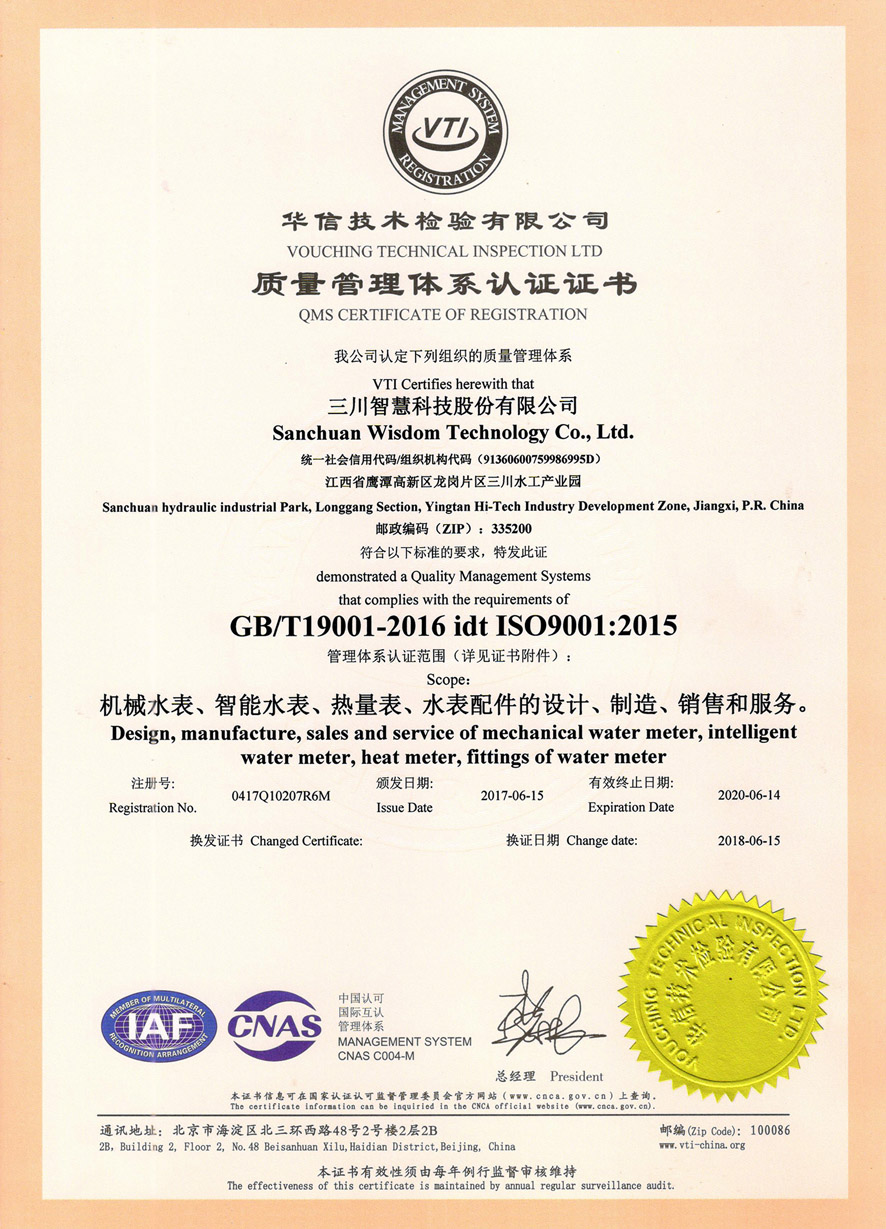 質量管理體系認證證書