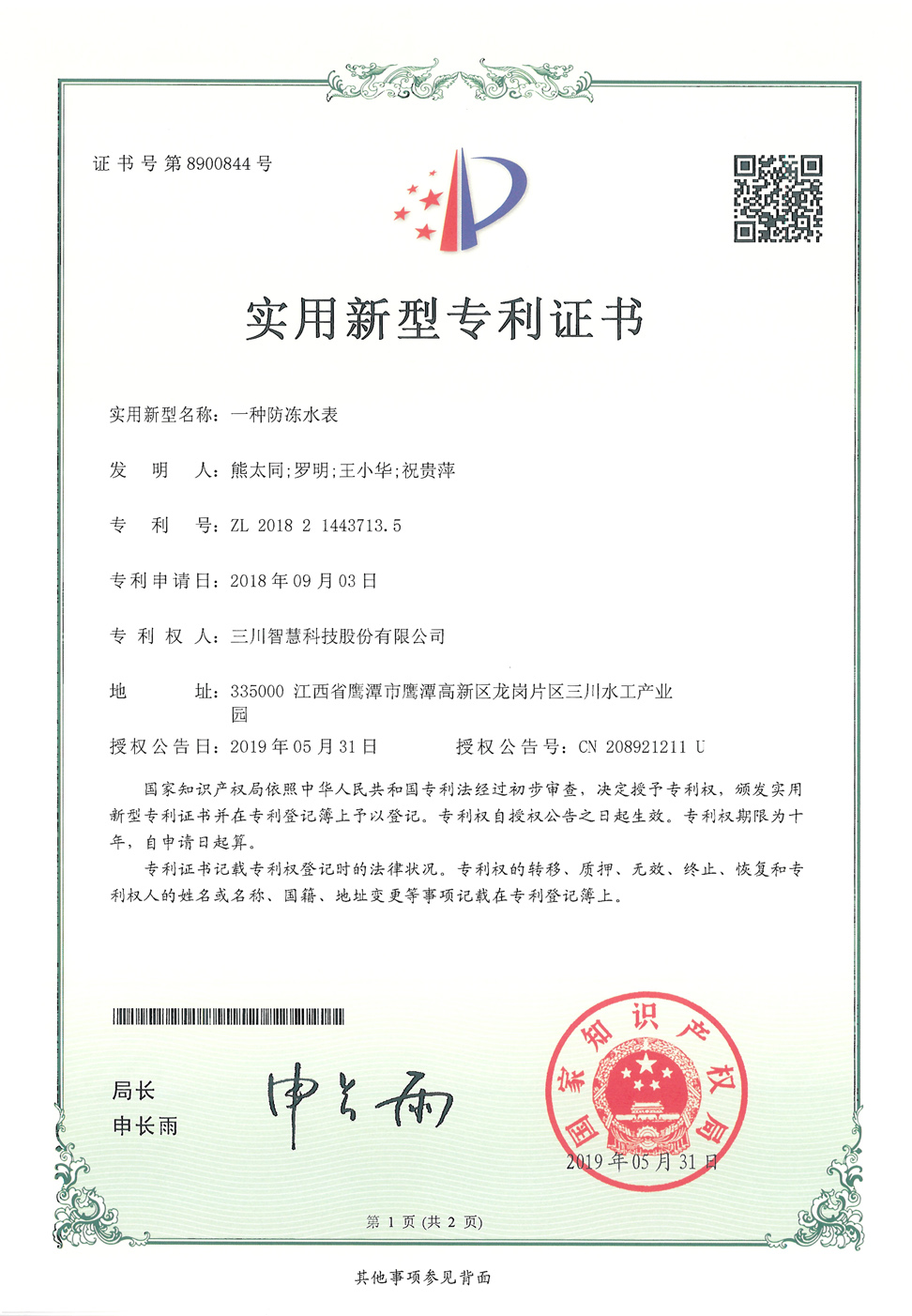 一種防凍水表