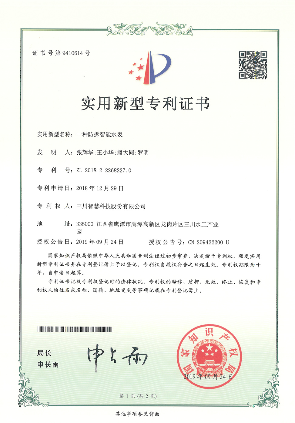 一種防拆智能水表