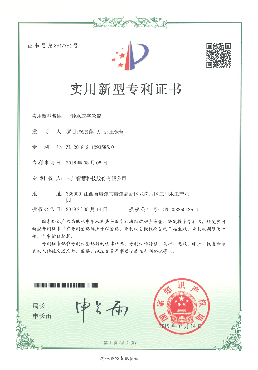 一種水表字輪窗
