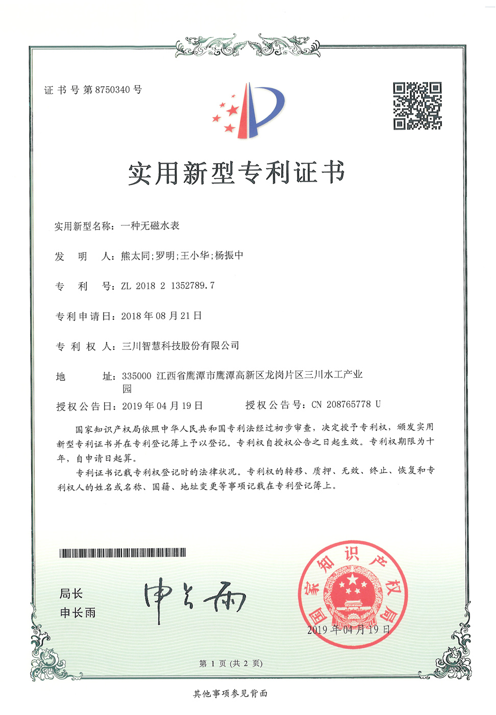 一種無磁水表
